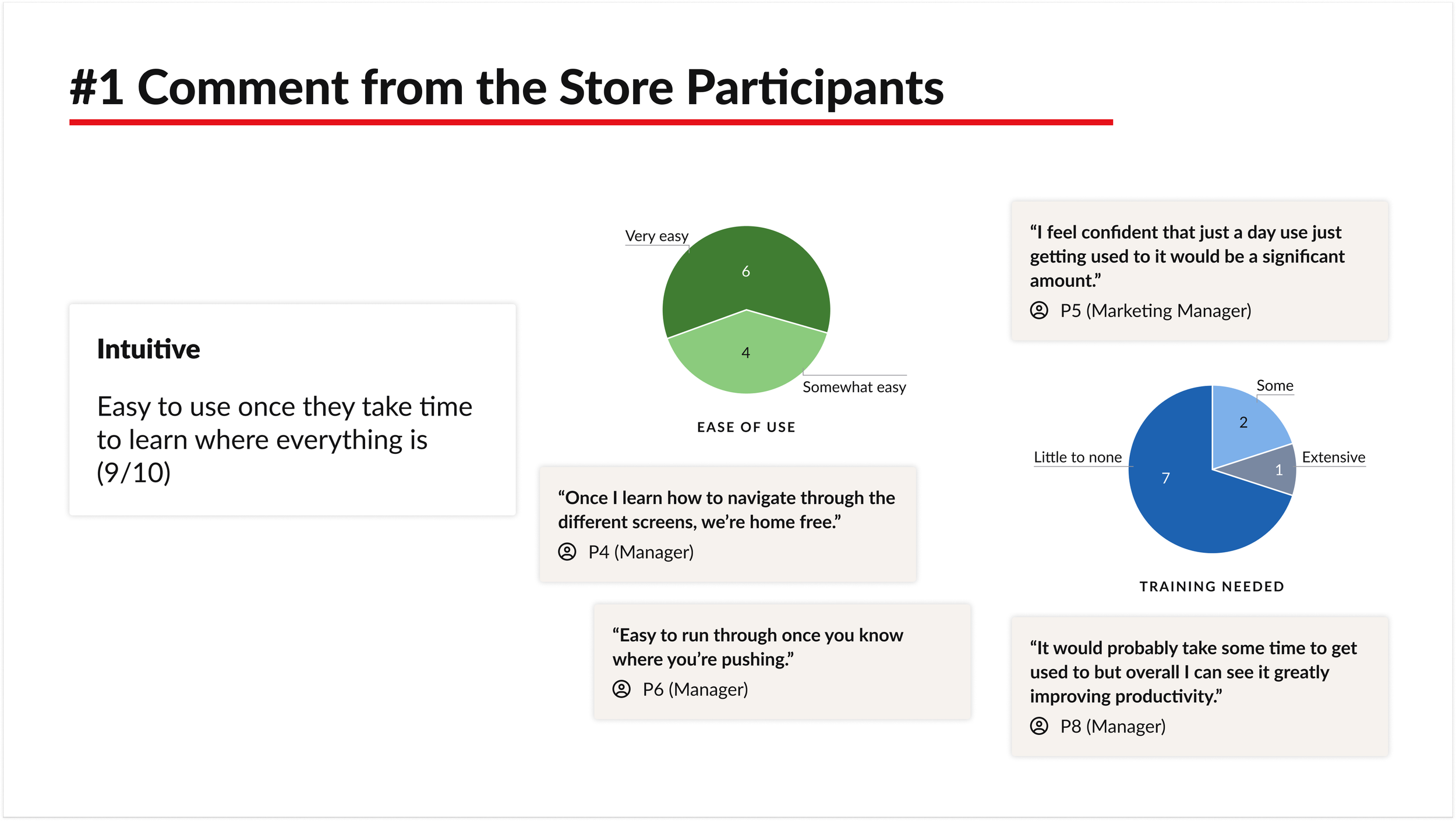 With refinements in place, we conducted moderated in-person testing on handheld devices with store associates and leaders