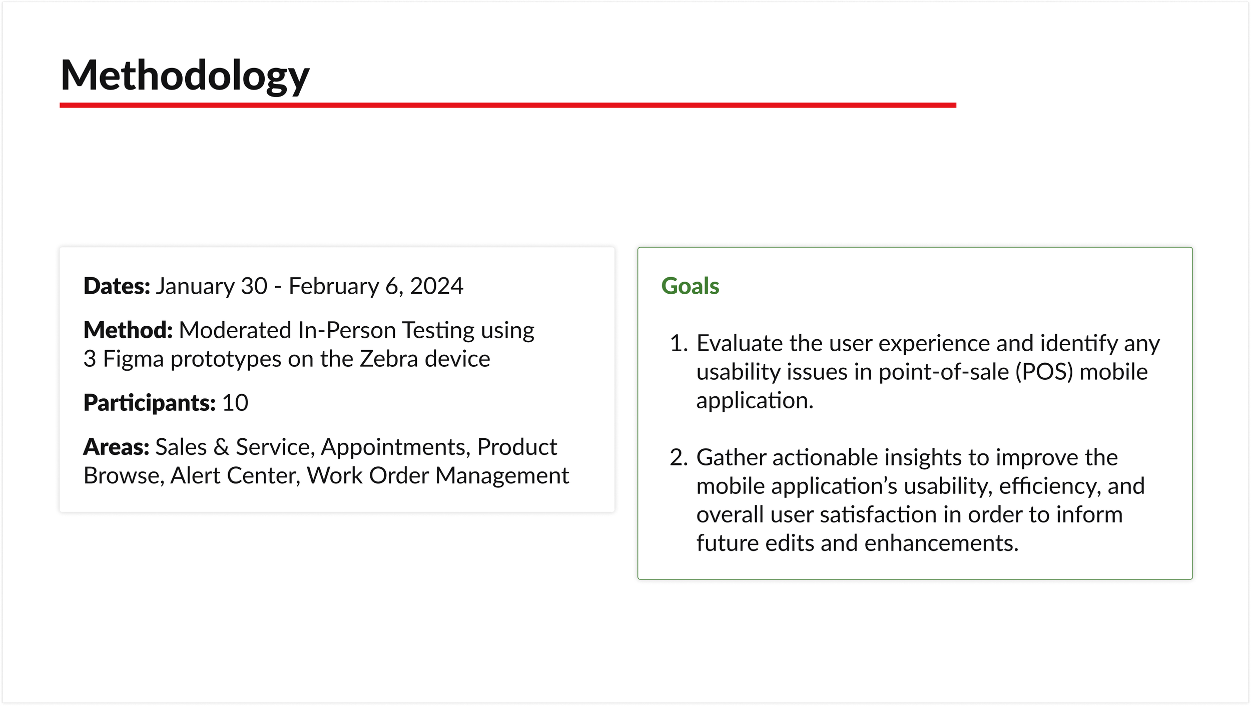 To reduce risk and ensure adoption of a new mobile point-of-sale (POS) system, I led two phases of usability testing prior to development. These studies validated critical workflows, uncovered usability issues, and informed design refinements that directly shaped what was built.